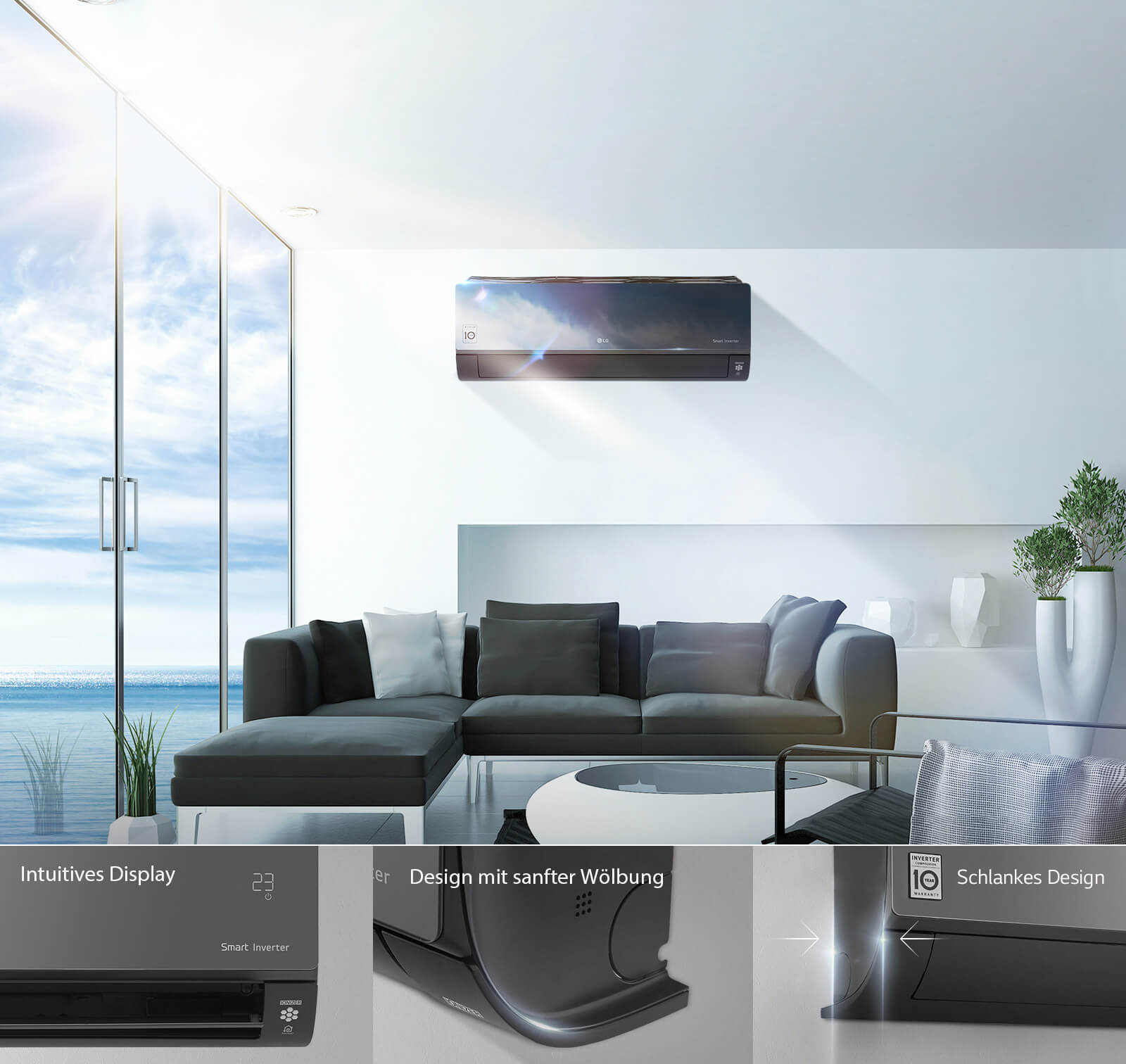 The design of the LG Artcool air conditioner is minimalist to harmonise with the interior of your home. The surroundings are reflected by the mirror glass on the front of the product. making its timeless beauty more apparent.