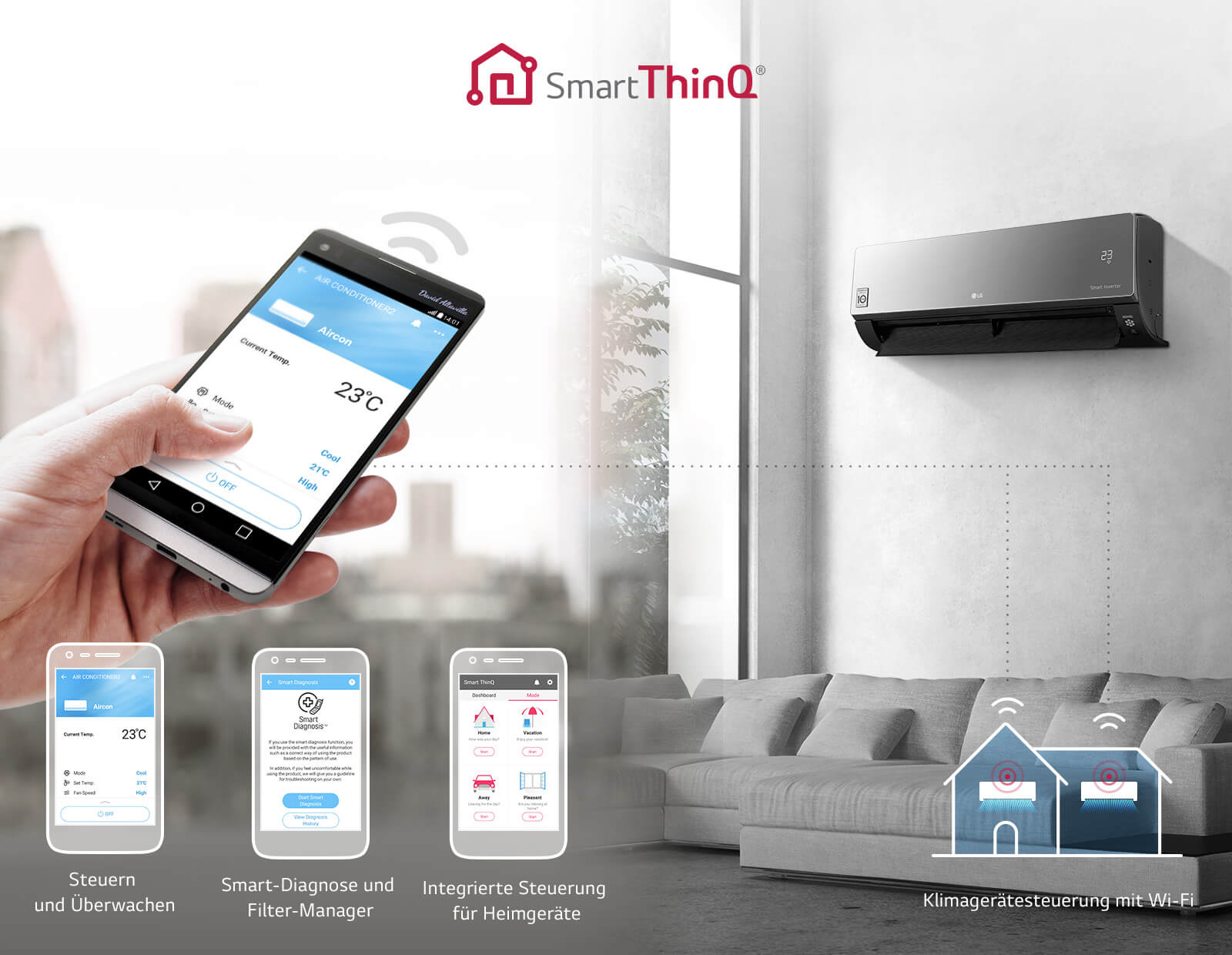 With the help of a Wi-Fi enabled device and LG's exclusive home control app. you can access your air conditioner anytime. anywhere.
