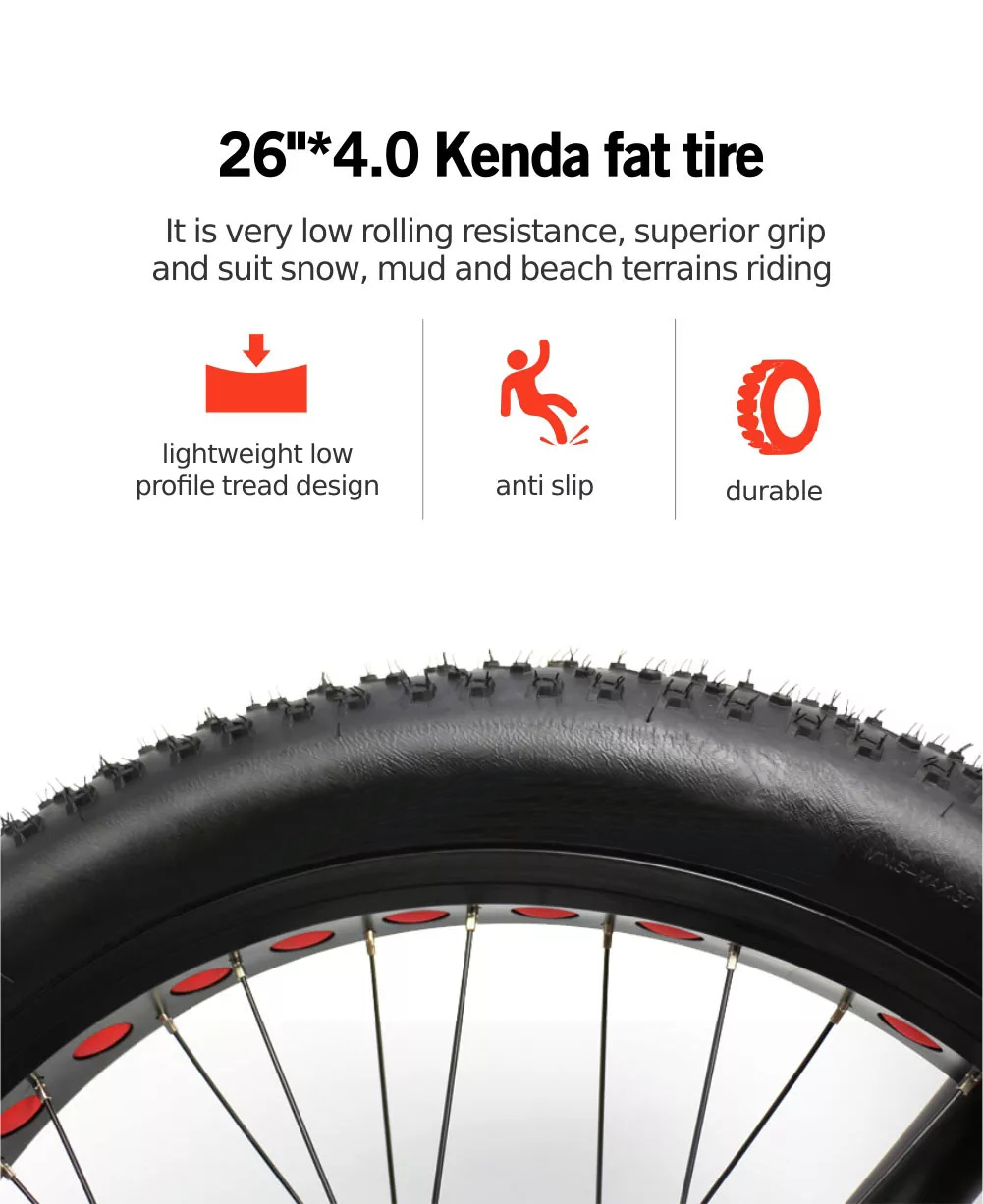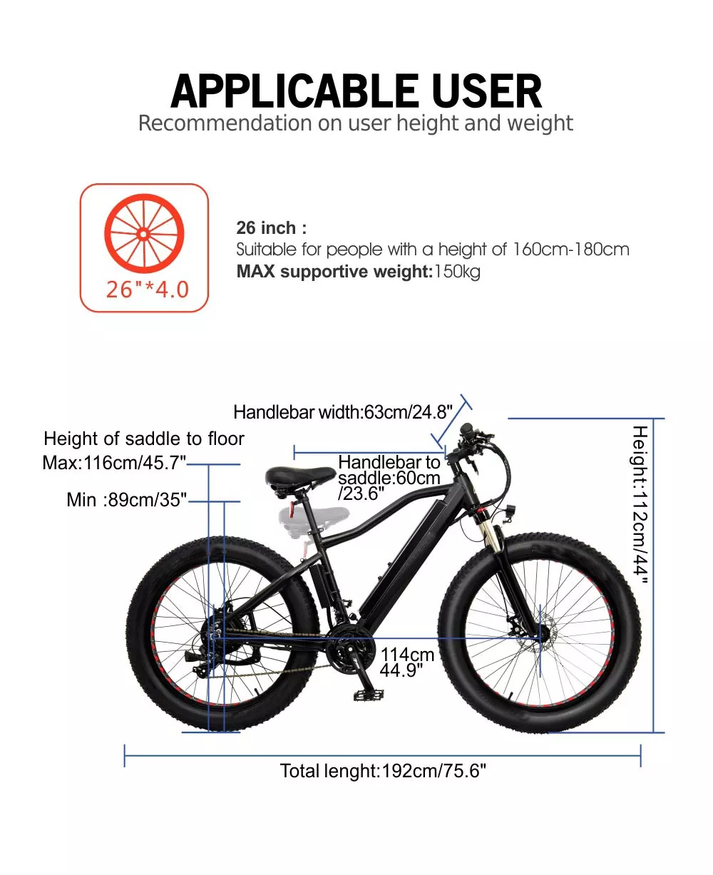 【Lockable Front Suspension Fork】✤ This fat tire e-bike comes with a versatile and high-quality front suspension fork that offers better shock absorption, greater durability, faster riding speed and less drag.It can cope with various road conditions, and you can adjust the proper driving speed to your needs to complete your journey.Not only for steep mountain bike riding, but also for city riding and commuting.