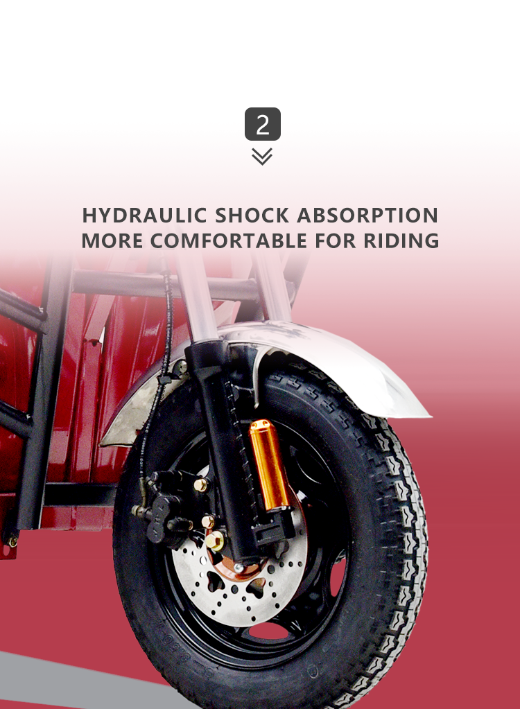 Specification list JLII150 Optional colors red. blue. green. yellow. grey. silver L×W×H(mm) 2942×1180×1370 Cargo Box size(mm) 1500×1100×330 Wheel base(mm) 2000 Wheel track(mm) 950 Minumum ground clearance(mm) ≥150 Minimum turning radius(m) ≤4 Curb weight(kg) 231 Rated load (kg) 300 Max speed(km/h) 35 Grade ability(%) ≤20 Battery 72V45AH-80AH Motor. Controller(w) 72V1000W Range per charging(km) 50-90 Charging time(h) 6~8h Front shock absorber Φ37 Disc shock absorber Rear shock absorber 50×105 Five pieces leaf spring Front/Rear tyre 3.5-12/4.00-12 Rim type steel Front/Rear brake type Front:Disc/Rear:Drum Parking brake Hand brake Rear axle structure Integrated rear axle SKD 50 Units/40HQ
