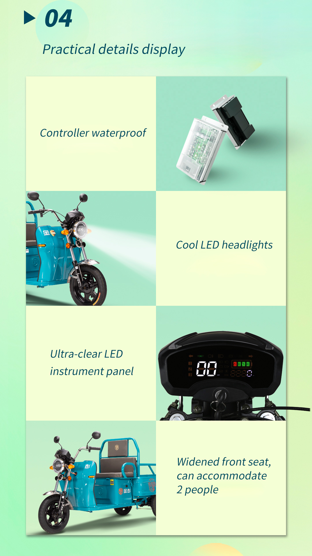 Efficient Speed: With a top speed of 30 km/h. it meets the daily commuting and transport needs effectively.