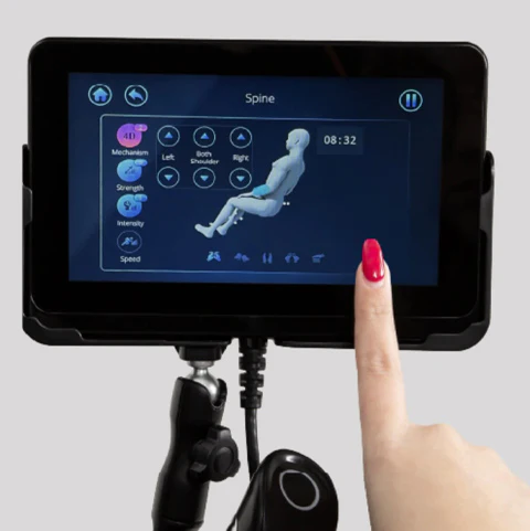 The OP-Xrest 4D Side Control Panel consists of quick settings such as heating. airbags changes. variation in 4D massage. backrest and legrest adjustments.